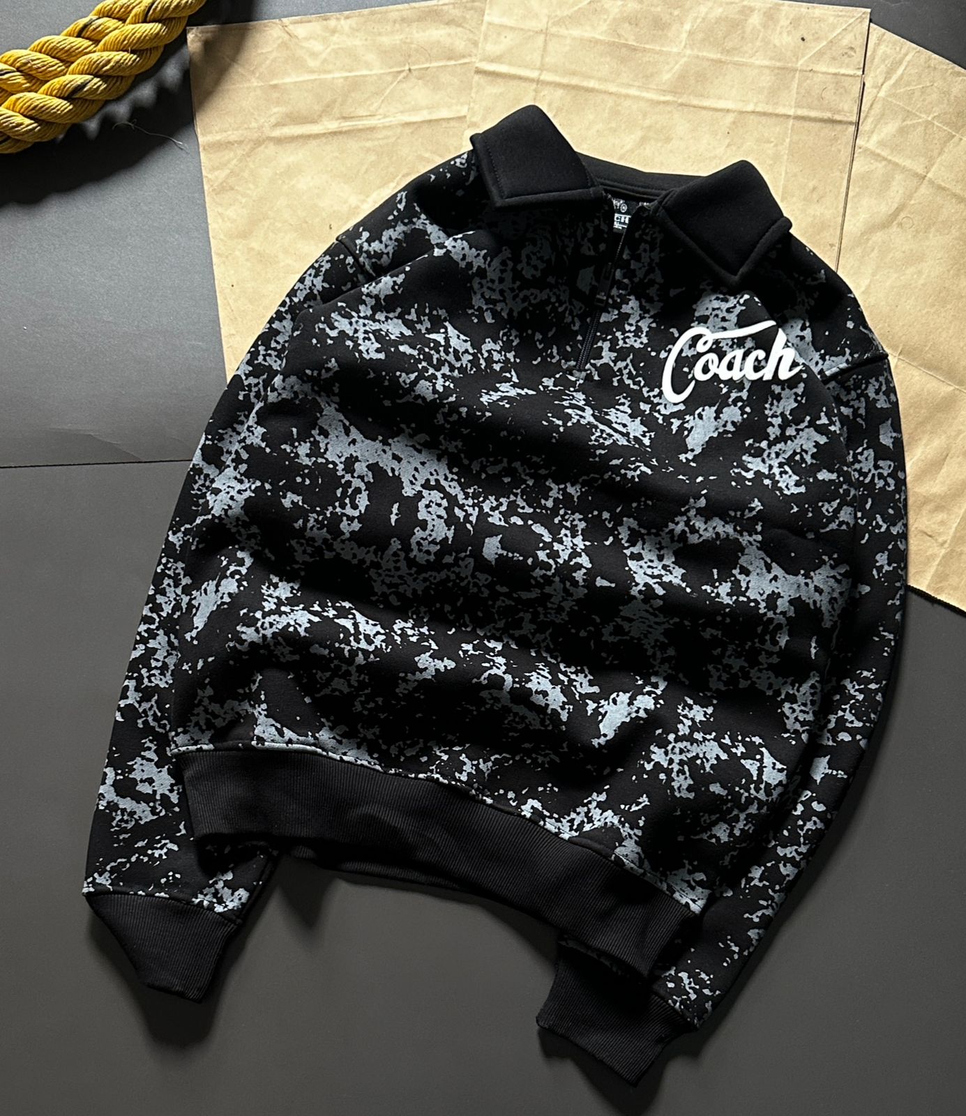 - Ribbed cuffs and hem for a snug fit