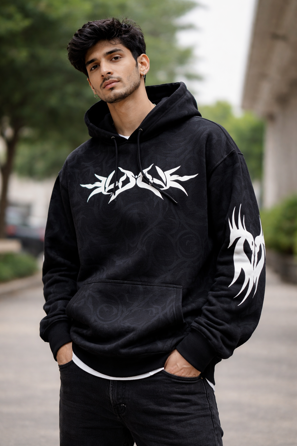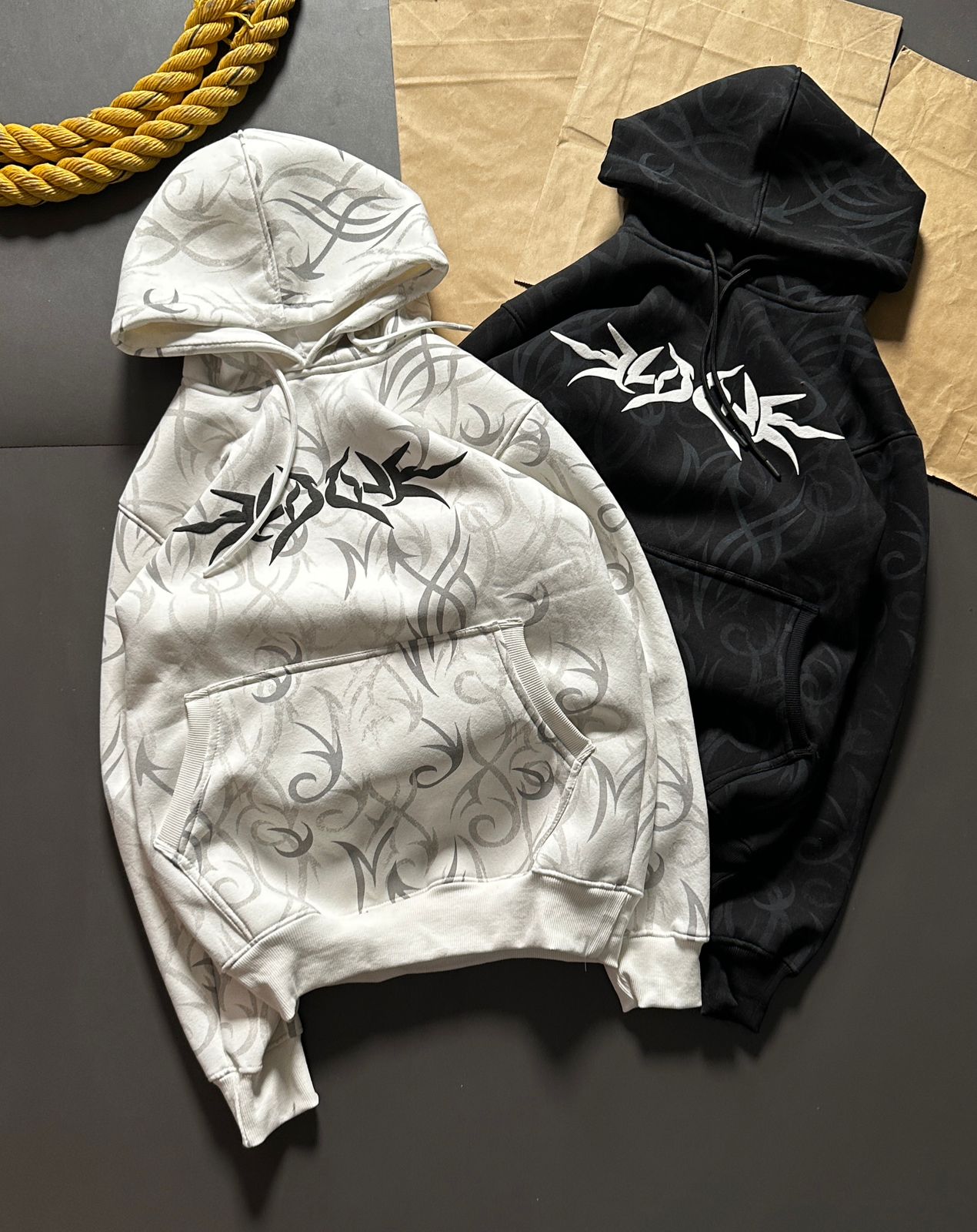 Thread Dori Luxury All-Over Print Hoodie – White & Black [BW-1]