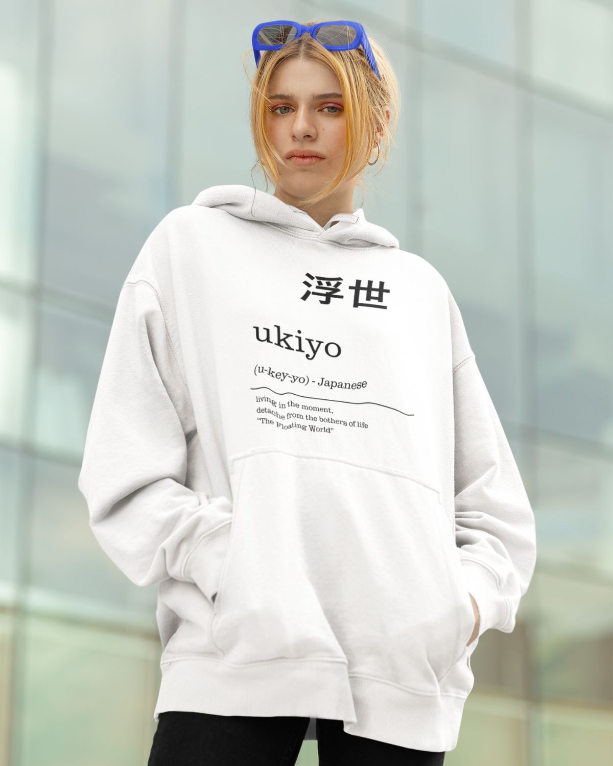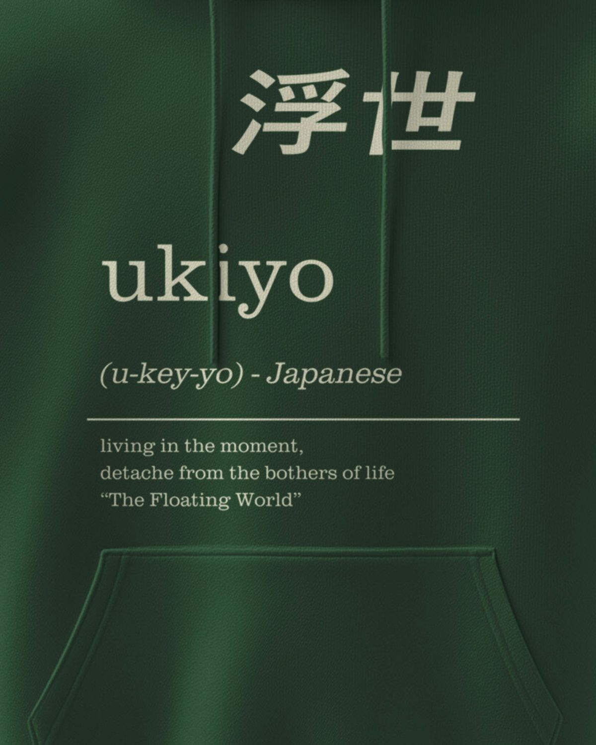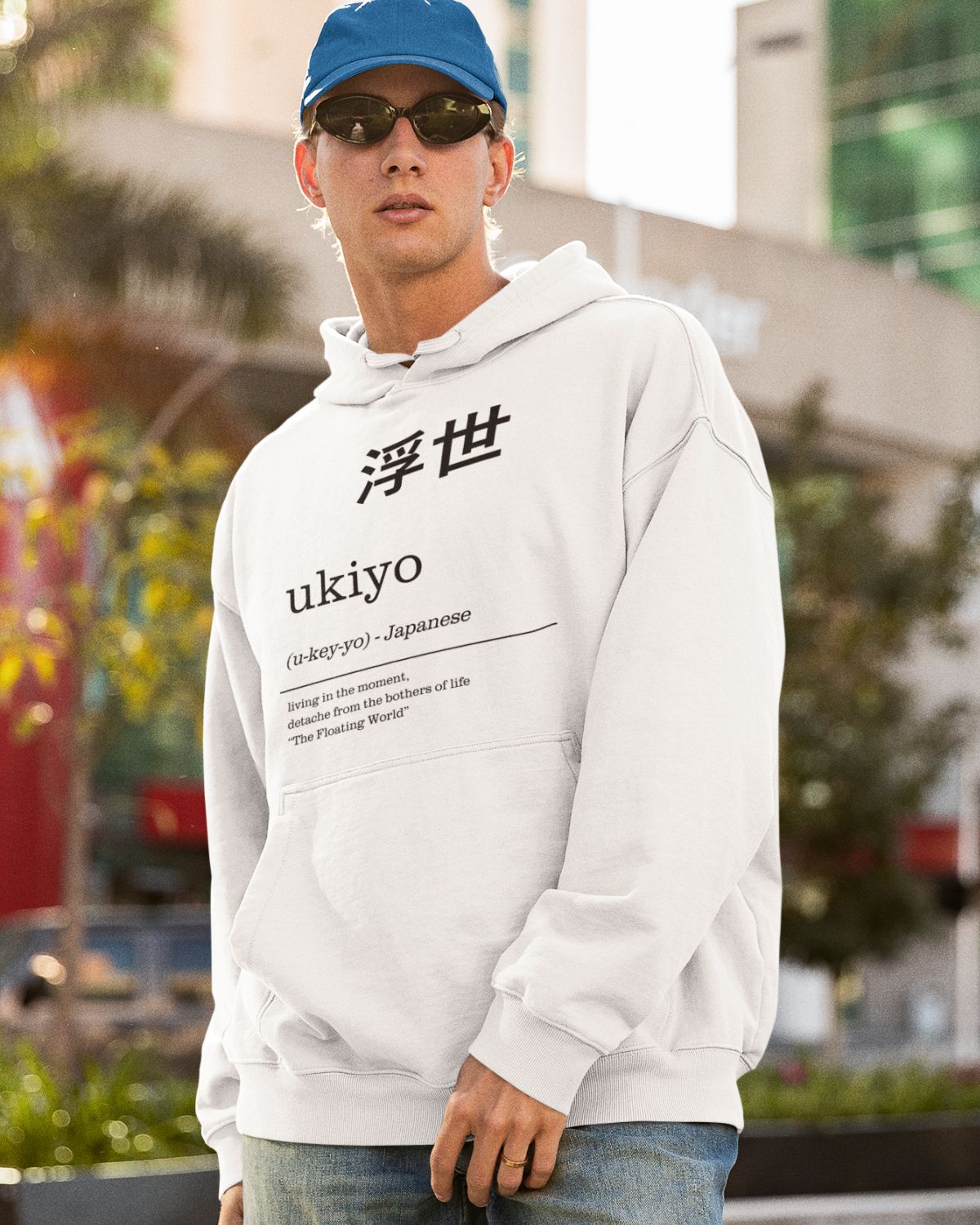 Immerse yourself in tranquility with this "Ukiyo" hoodie, celebrating the Japanese philosophy of living in the moment. Featuring the kanji characters 浮世 and an elegant definition, this hoodie is perfect for those seeking simplicity and mindfulness.