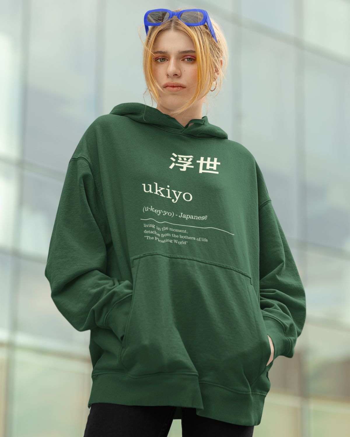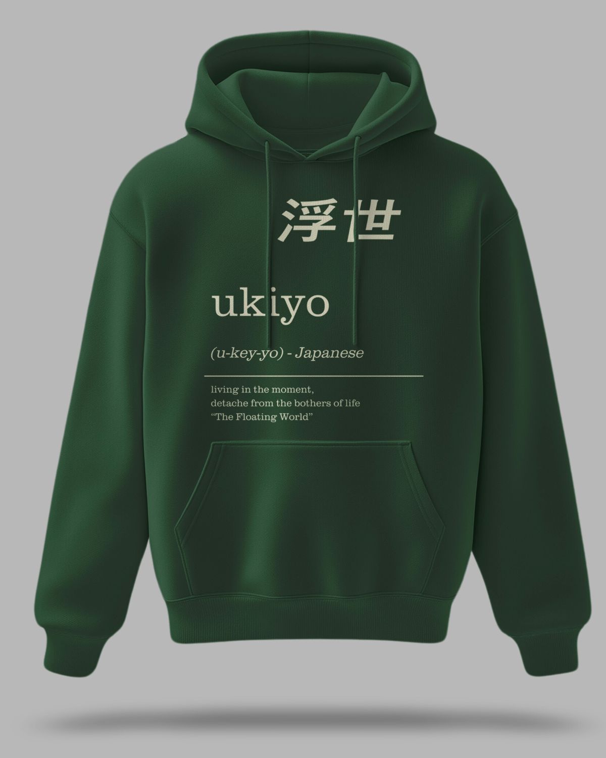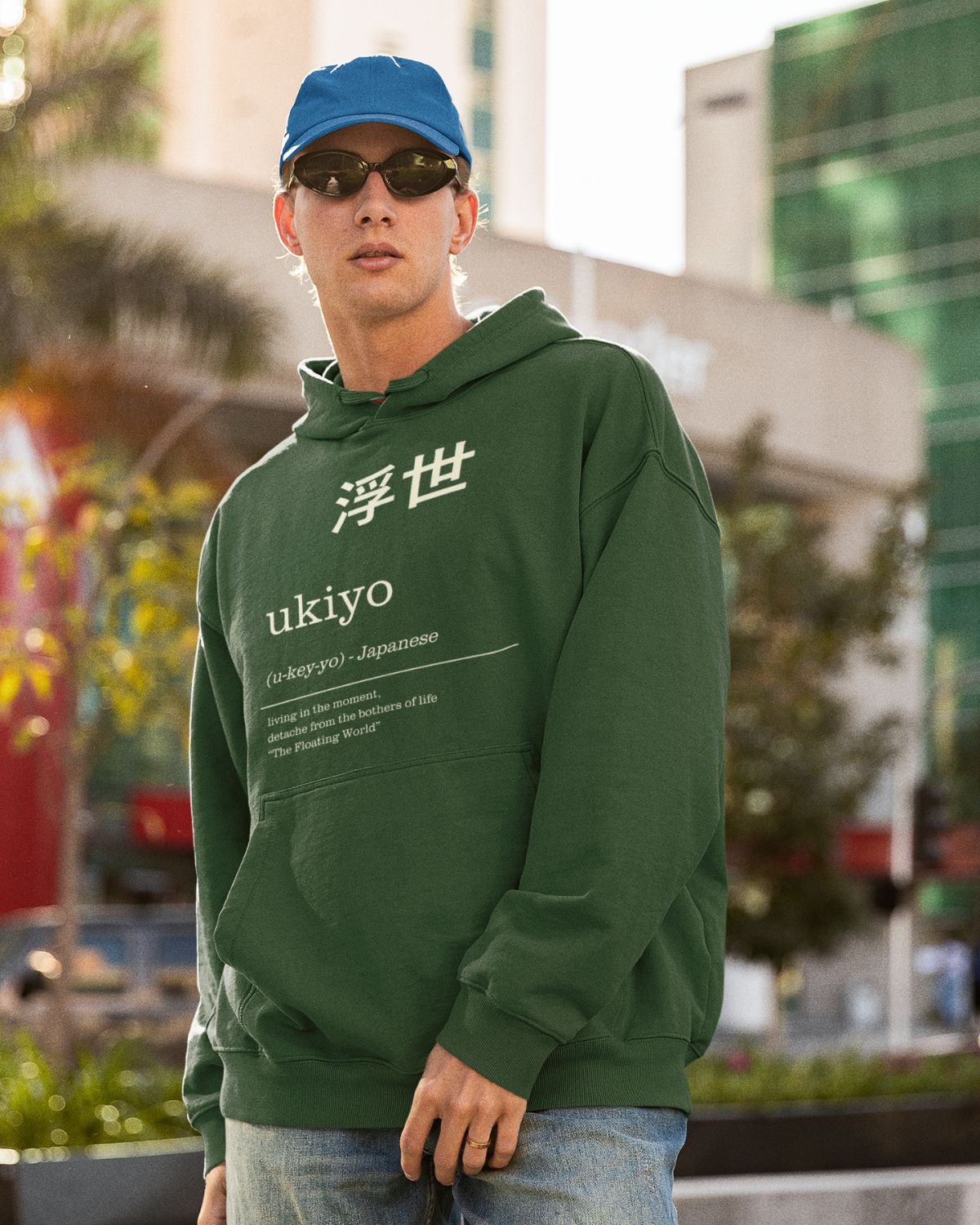 Immerse yourself in tranquility with this "Ukiyo" hoodie, celebrating the Japanese philosophy of living in the moment. Featuring the kanji characters 浮世 and an elegant definition, this hoodie is perfect for those seeking simplicity and mindfulness.